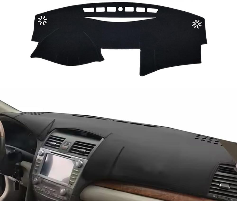 【Material】: High quality PU leather material 【Reduces glare】: ★ The reflection of sunshine and the light from the opposite traffic from your dashboard onto the windshield, makes a drive fall easy victim of traffic accidents.Dashboard cover will reduce such reflection to the maximum, guard your driving safety. 【Defend Your Dashboard Against Cracking】: ★Protect dashboard from damage in winter cold climate; Blocking UV rays from heating-up the dashboard in summer, cools vehicle's temperature, keeps your dashboard in perfect condition, save fuel for you. 【Carefully Crafted Materials】: ★Made of High Quality PU leather, environment,anti-slip, colorfast, non-shrinking needle-punch carpet. 【Easy Installation】: ★High Quality Composite Material with Silicone Sheet anti slip backing.Easy Installation, no adehsives required. Simply place the mat on top of the dashboard. 【Product Content】: Dashboard Cover Mat×1