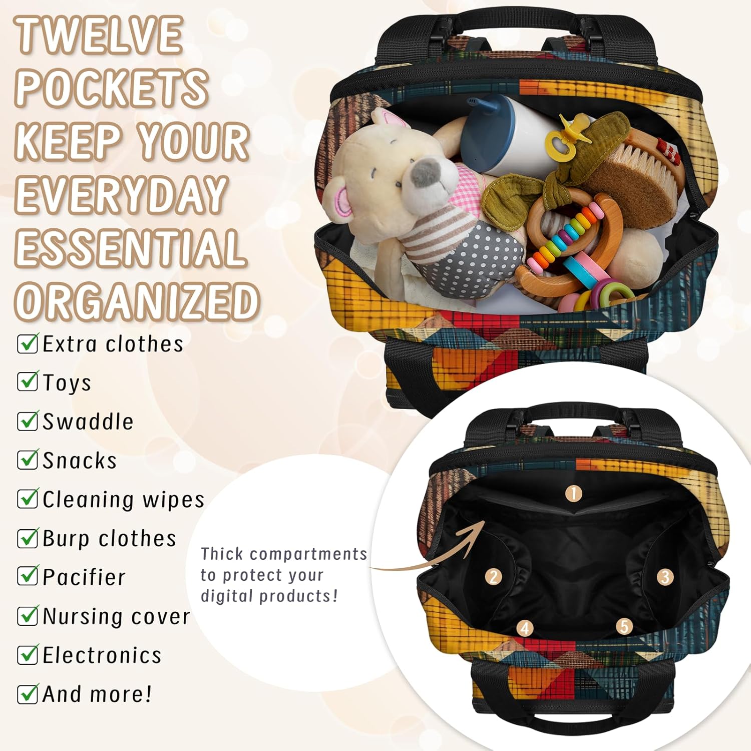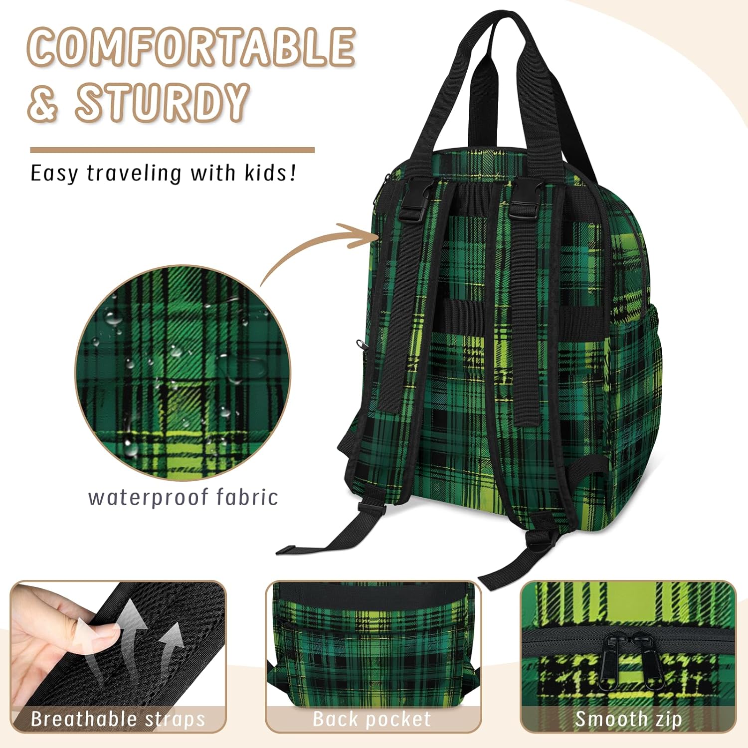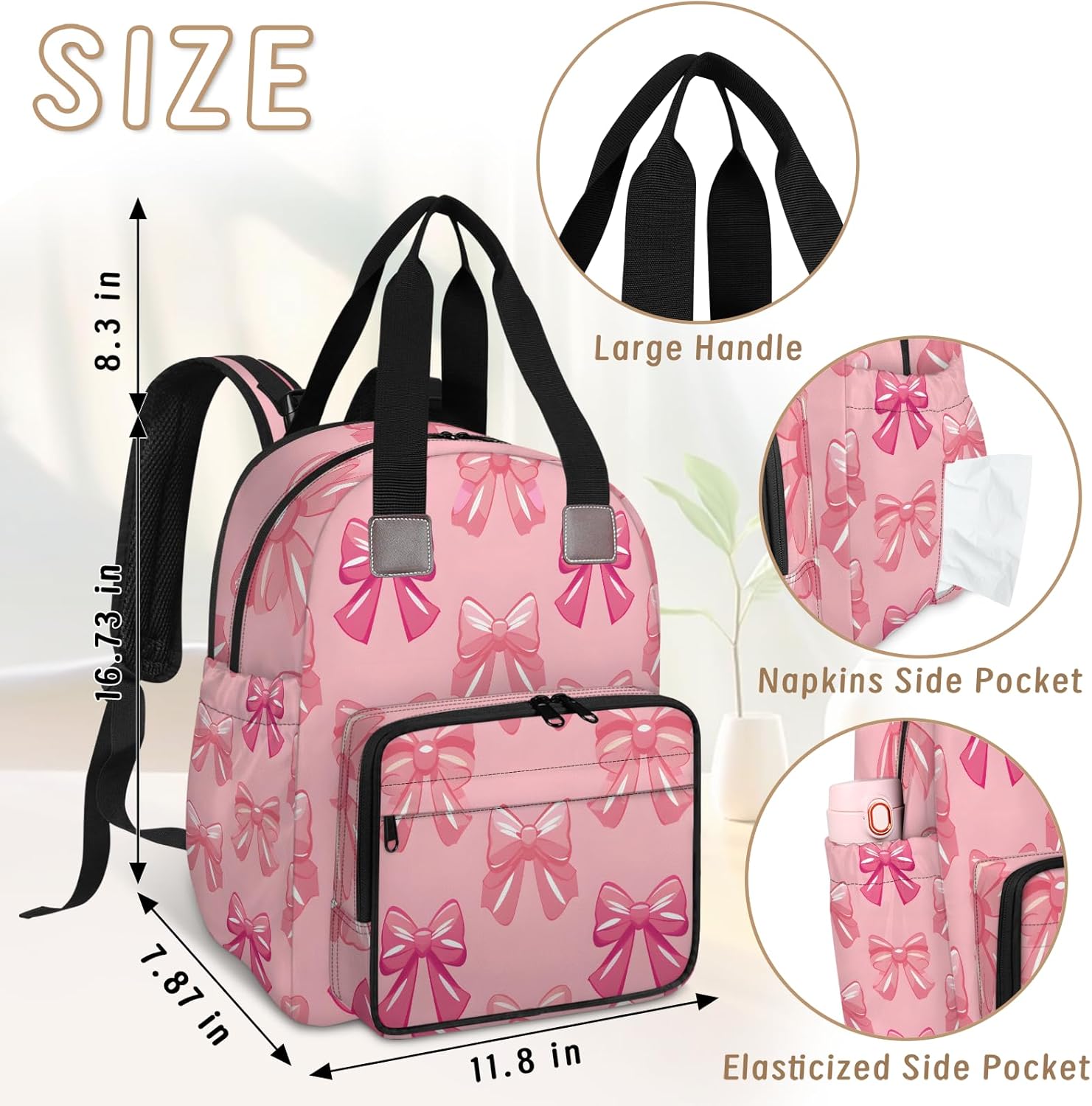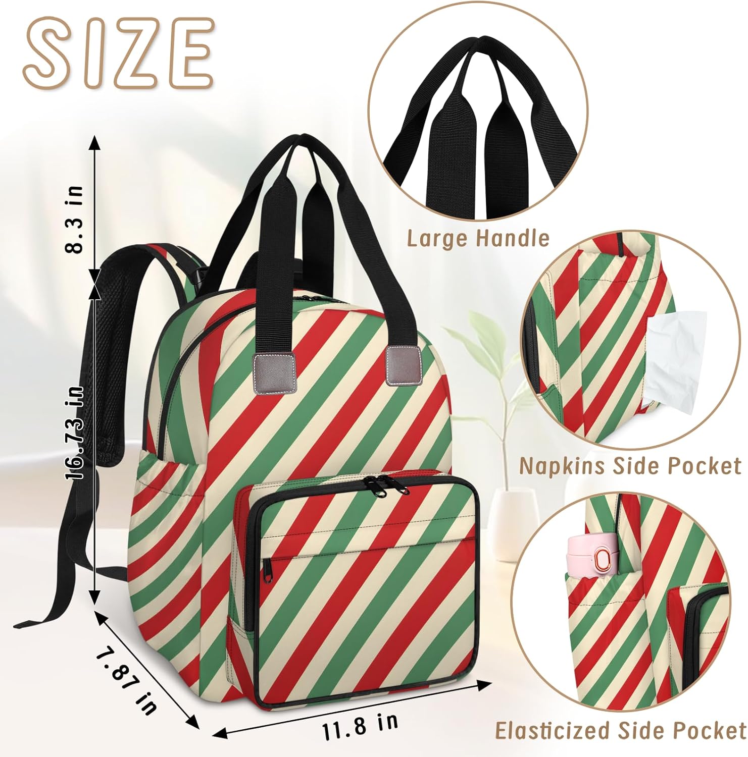 CNNINGYI Diaper Bag Backpack, Large Capacity Travel Daypack Baby Nappy Bags.Large Capacity Diaper Bag Backpack:11.8"L X 7.87"W X 16.73"H. This diapers bag can hold mom and baby's essentials, when your are out.Spacious compartments multiple pockets. Large Capacity nursing Baby Bags is suitable for Mom and Dad.Multi-pockets: One main compartment with 6 seperate pockets inside for baby's clothes, diapers, towel, pants, wipes, tissue and more newborn essentials.One front zippered pocket with 2 insulated bottle pockets inside, keep the milk warm. Two exterior side pockets for umbrella or water bottles.Adjustable Shoulder Strap: Adjustable shoulder straps ensure that the backpack fits the body and reduces the burden on the back.Empty bag can be stood, can be a hand bag or shoulder bag. Easily to hang on the stroller. With smooth zipper.Great New Mom Gifts: Suitable for shopping, work, picnic, walking, picnic, traveling and more outdoor activities.It's a great choice for a baby shower gift, Ideal gifts for pregnancy, novice parents mom, dad, fathers.Care: Hand wash recommended